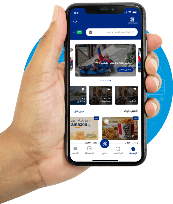 استرداد نقدي وفوري من إجمالي قيمة فاتورتك على كل عملية شراء.